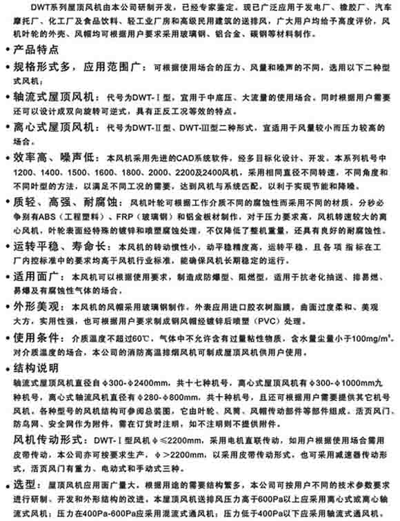 產(chǎn)品名稱(chēng):DWT-II(III)型離心式屋頂風(fēng)機(jī)